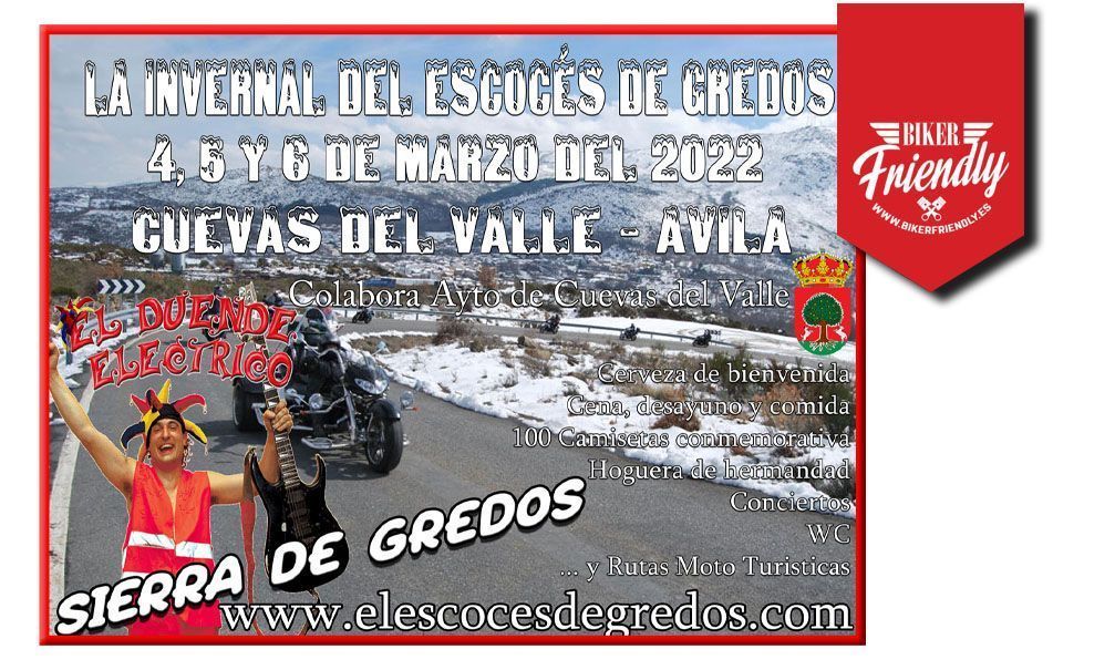 CUEVAS DEL VALLE, a accedido a cooperar con este evento Moto Turístico, hagamos de esta reunión una fiesta especial en agradecimiento a su Excelentísimo ayuntamiento y vecinos por su confianza mas que demostrada y así poder continuar año tras año. SUGERENCIAS A TENER EN CUENTA: Esta reunión Moto Turística se organiza para para ofrecer la Sierra de Gredos como lugar turístico, sin intención de competir en ningún aspecto, para ello tenemos los circuitos. Por ello la organización y el Ayuntamiento de CUEVAS DEL VALLE, no se responsabiliza en incidentes y accidentes que cualquier participante le pueda afectar «o en desgracia provocar».